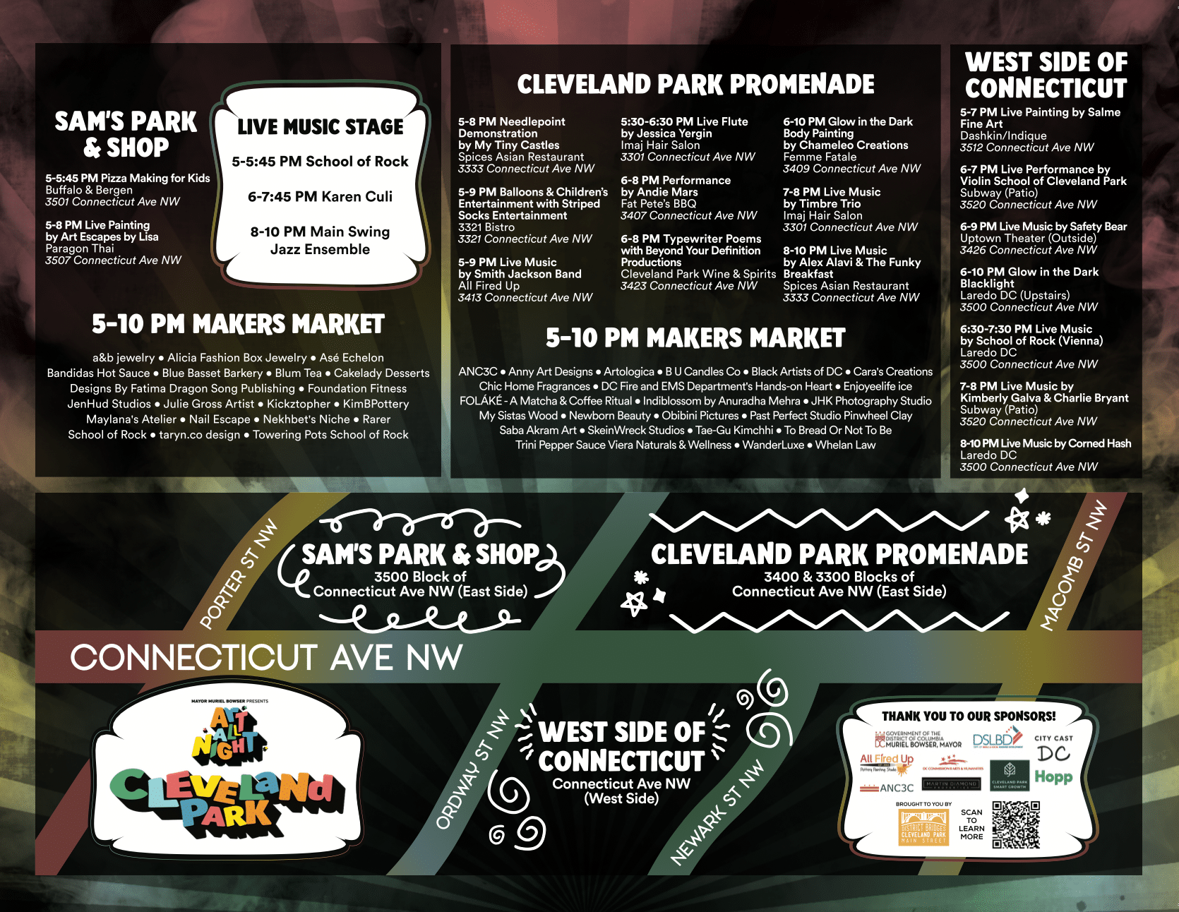 Support this eventJoin Cleveland Park Main Street and District Bridges as we bring Mayor Bowser’s Art All Night to the neighborhood!