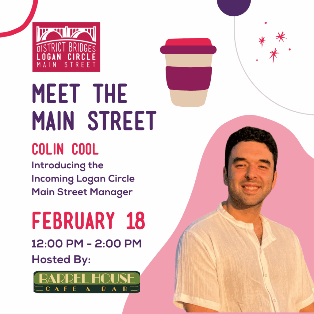 Support this eventJoin the Logan Circle Main Street (LCMS) Manager, Colin Cool, for an informal coffee chat. All community members are encouraged to come including business owners, general managers, all residents (homeowners and renters), local organizations.