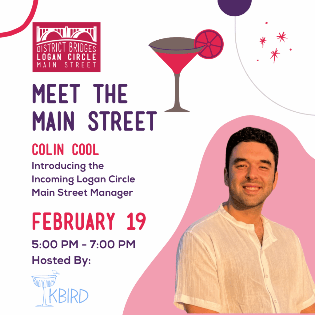 Support this eventJoin the Logan Circle Main Street (LCMS) Manager, Colin Cool, for an informal happy hour. All community members are encouraged to come including business owners, general managers, all residents (homeowners and renters), local organizations.